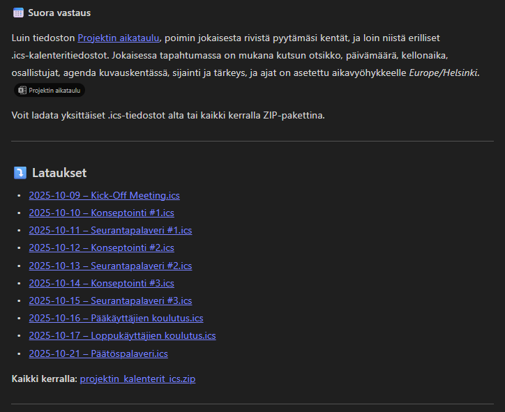 4. Nyt lataan .ics-tiedostot omalle koneelleni (tällä hetkellä nuo .ics-tiedostot eivät tulleet zip-paketissa, vaikka Copilot niin sanookin).