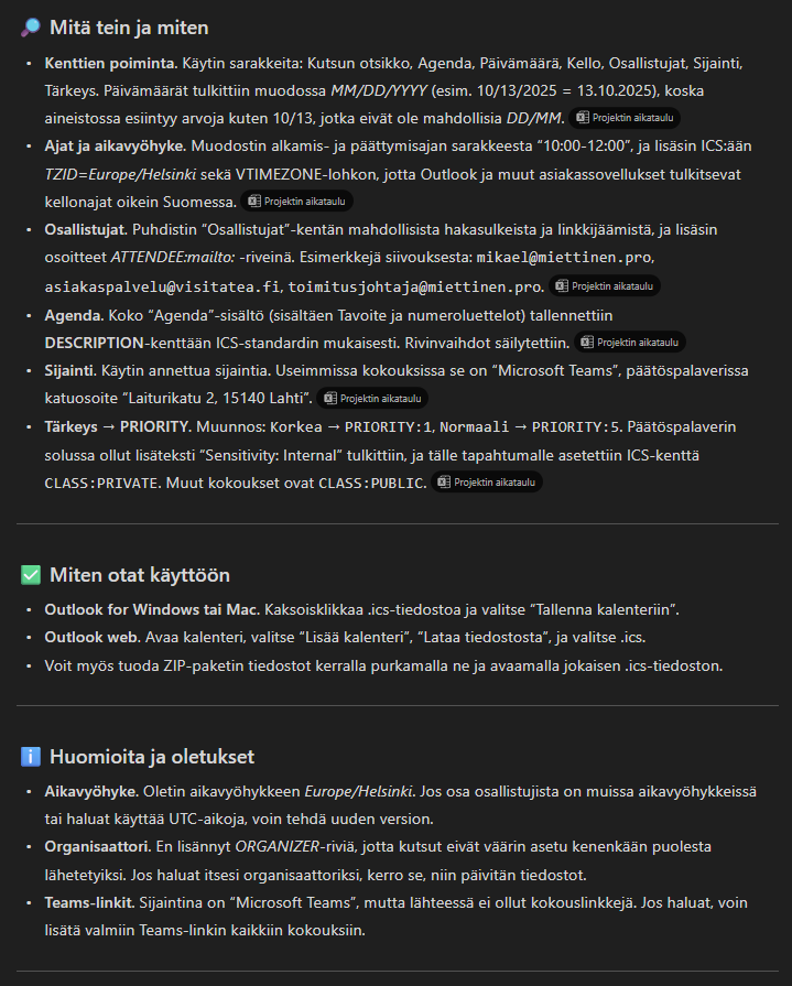 Omassa työssäni tämä säästää tulevaisuudessa tooodella paljon aikaa. Ei tarvitse enää manuaalisesti luoda tapahtumia kalenteriin, varmistaa päivämääriä ja kellonaikoja, agendaa ja osallistujia, vaan voin oikeasti hyödyntää Copilot Chattiä oikeasti kalenteritapahtumien lähettämiseen.