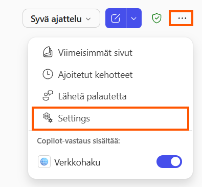 Tämän voit halutessasi myös täpätä pois päältä, jos et halua, että Copilot hyödyntää aiempia keskustelujasi uusissa Copilotin keskusteluissa. (En suosittele täppäämään pois päältä, vaan pitämään päällä)