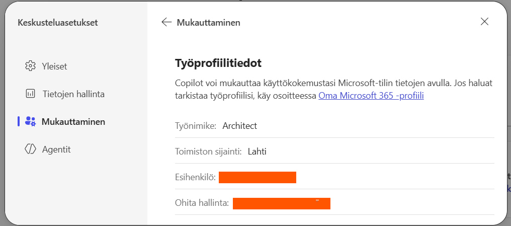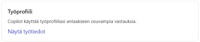 – Työprofiili: Copilot tunnistaa työroolisi ilman, että sille pitää asiasta kertoa.